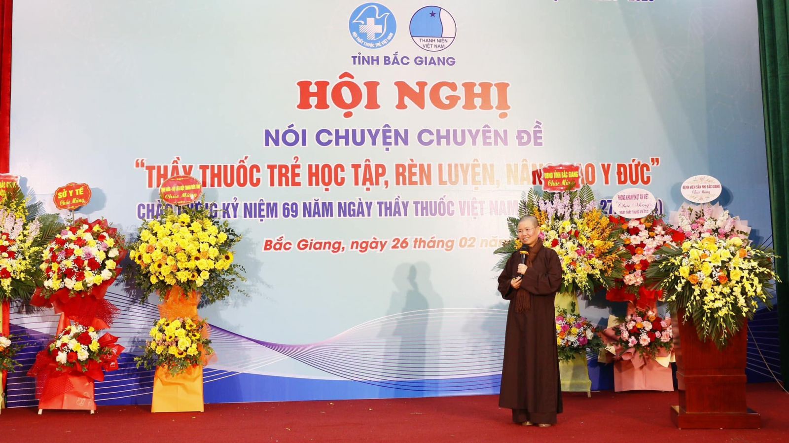 Với chủ đề" Thầy thuốc trẻ học tập, rèn luyện, nâng cao y đức", tại đây Sư cô Thích nữ Vĩ Nghiêm, tiến sĩ Phật Học, trụ trì chùa Yên Đức, Thuận Thành, Bắc Ninh, chủ nhiệm dự án tủ sách bệnh viện đã trao đổi, thảo luận nhiều vấn đề xoay quanh chủ đề về y đức trong tình hình hiện nay. Vai trò, giá trị đích thực Y đức, tức là, vừa phải tinh thông về chuyên môn nghiệp vụ, vừa phải có lương tâm nghề nghiệp.