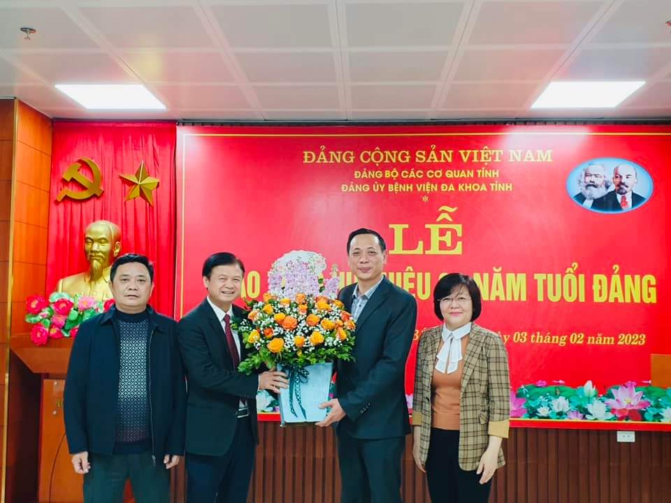 Tại buổi lễ, thừa uỷ quyền đồng chí Nguyễn Quang Hùng, Phó Trưởng ban Tổ chức Đảng uỷ Các cơ quan tỉnh, Phó Bí thư Đảng uỷ Bệnh viện đã công bố Quyết định số 490-QĐ/TU của Ban thường vụ tỉnh uỷ tặng Huy hiệu 30 năm tuổi Đảng cho đồng chí Vũ Thanh Giang, Phó Bí thư Đảng uỷ, Phó Giám đốc Bệnh viện.