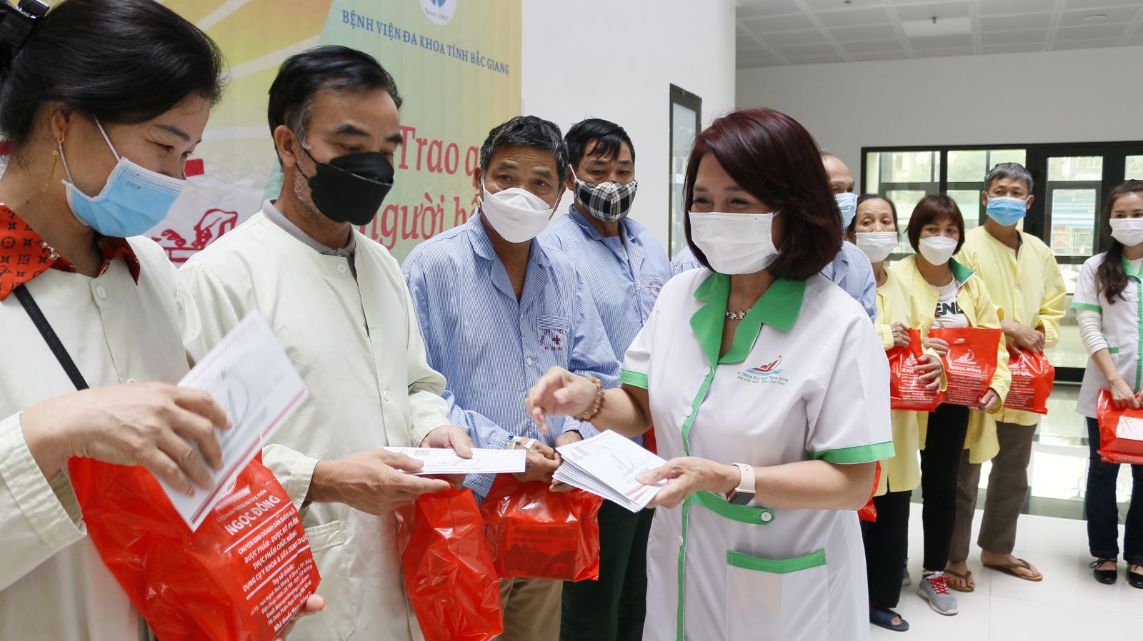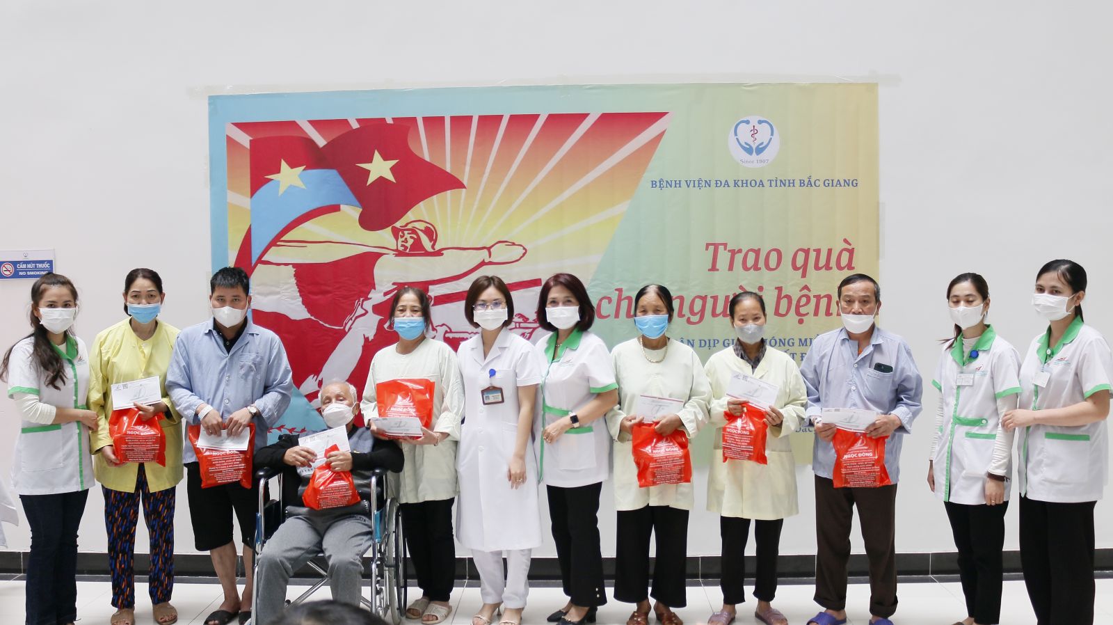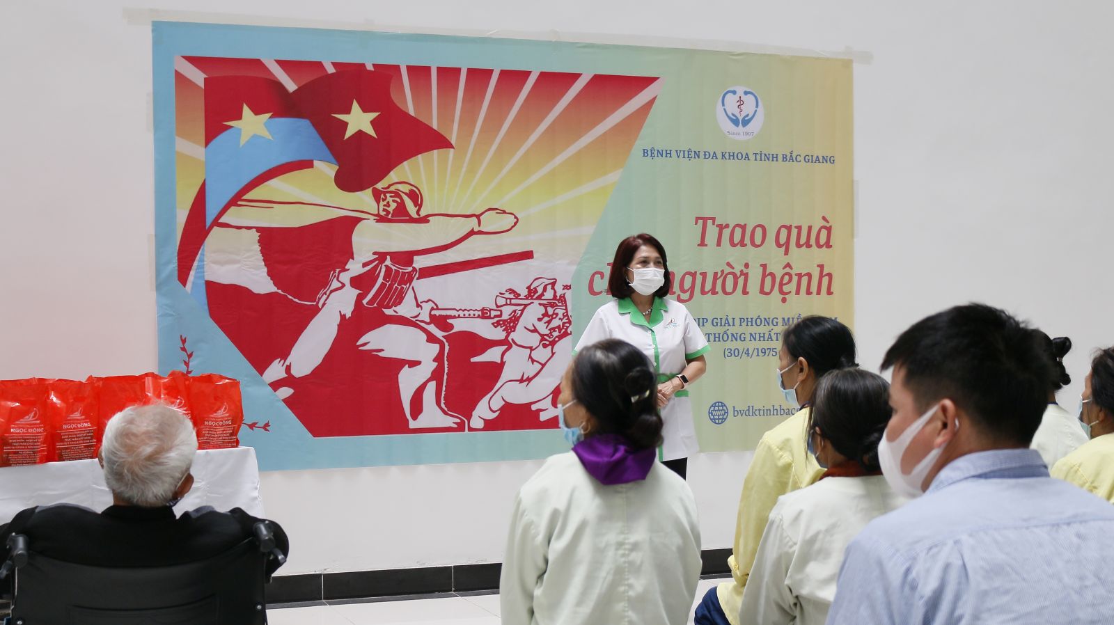 Nhằm phát huy truyền thống tương thân tương ái, lá lành đùm lá rách của người Việt Nam, nhân dịp kỷ niệm 48 năm ngày giải phóng Miền Nam thống nhất đất nước (30/4/1975 - 30/4/2023). Bệnh viện Đa khoa tỉnh Bắc Giang phối hợp cùng Công ty cổ phần Dược phẩm Ngọc Đông tổ chức thăm hỏi và tặng quà cho người bệnh đang điều trị nội trú tại Bệnh viện.