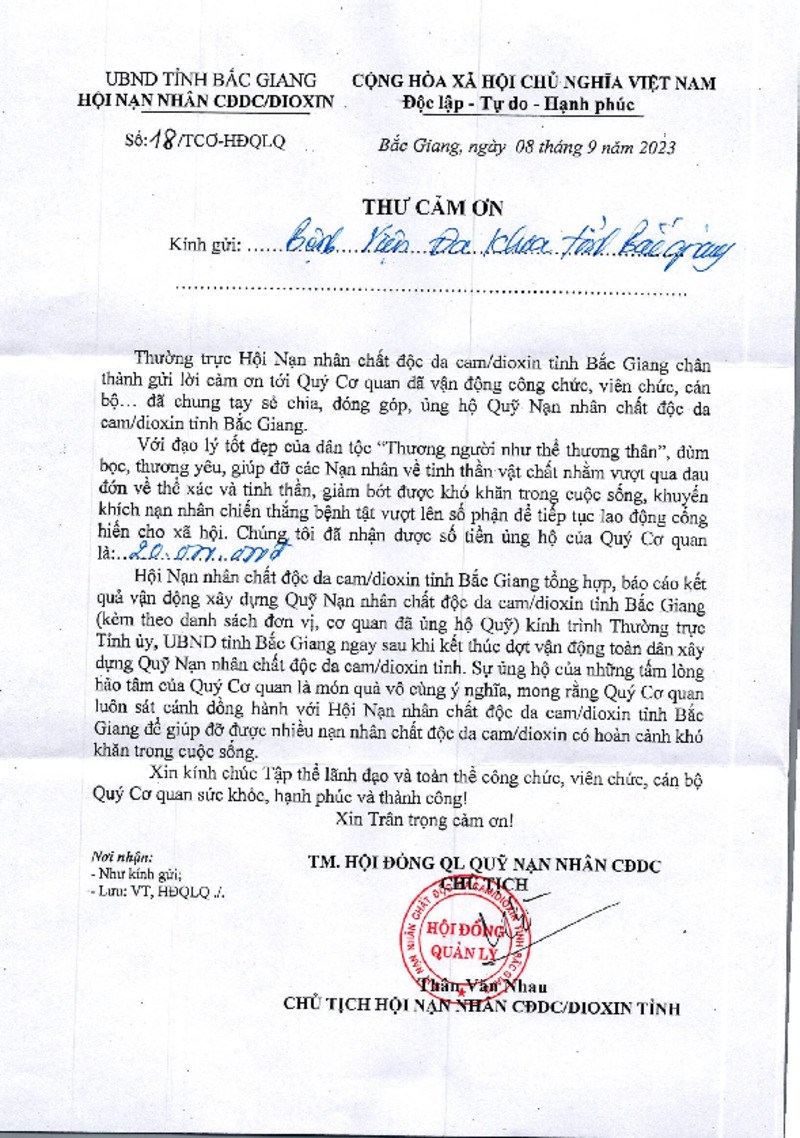 | Mô tả | Trích yếu: Thư cảm ơn |