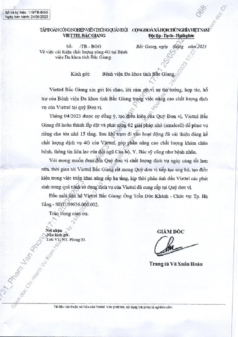 | Số hiệu | 119/TB-BGG | Cơ quan ban hành | Viettel Bắc Giang |