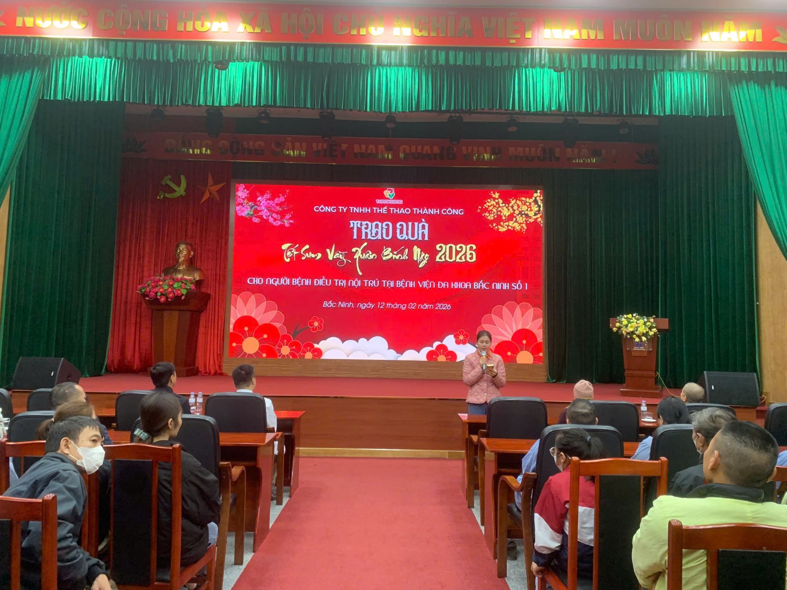 Phát huy truyền thống nhân ái, sẻ chia “Một miếng khi đói bằng một gói khi no”. Nhằm kết nối các nhà hảo tâm, mạnh thường quân, những tấm lòng nhân ái đến với người bệnh nhất là những người bệnh có hoàn cảnh khó khăn, người bệnh mắc bệnh nặng, bệnh hiểm nghèo hiện đang điều trị nội trú tại bệnh viện. Sáng ngày 12/02/2026, Bệnh viện Đa khoa Bắc Ninh số 1 phối hợp Công ty TNHH thể thao Thành Công tổ chức Chương trình trao quà cho người bệnh có hoàn cảnh khó khăn đang điều trị nội trú.