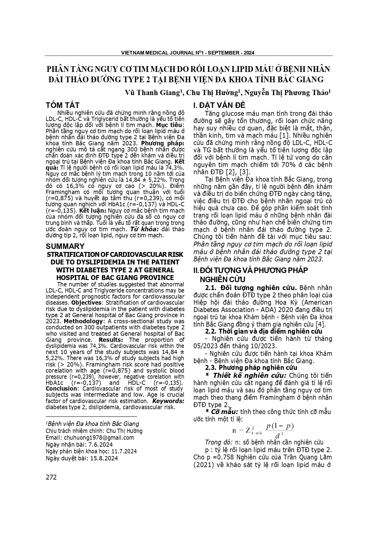 [Đề tài] Phân tầng nguy cơ tim mạch do rối loạn Lipid máu ở bệnh nhân đái tháo đường type 2 tại Bệnh viện Đa khoa tỉnh Bắc Giang