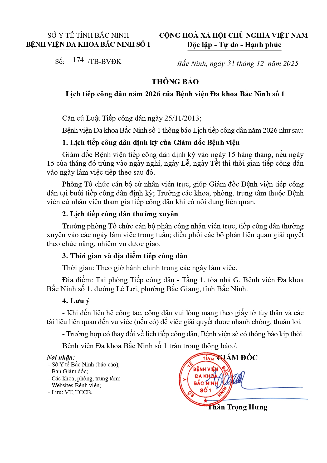 Thứ 5, 01/01/2026 | 10:59 A- A A+ | Lịch tiếp công dân năm 2026 của Bệnh viện Đa khoa Bắc Ninh số 1 Đọc bài Lưu Tổng số điểm của bài viết là: 0 trong 0 đánh giá Click để đánh giá bài viết