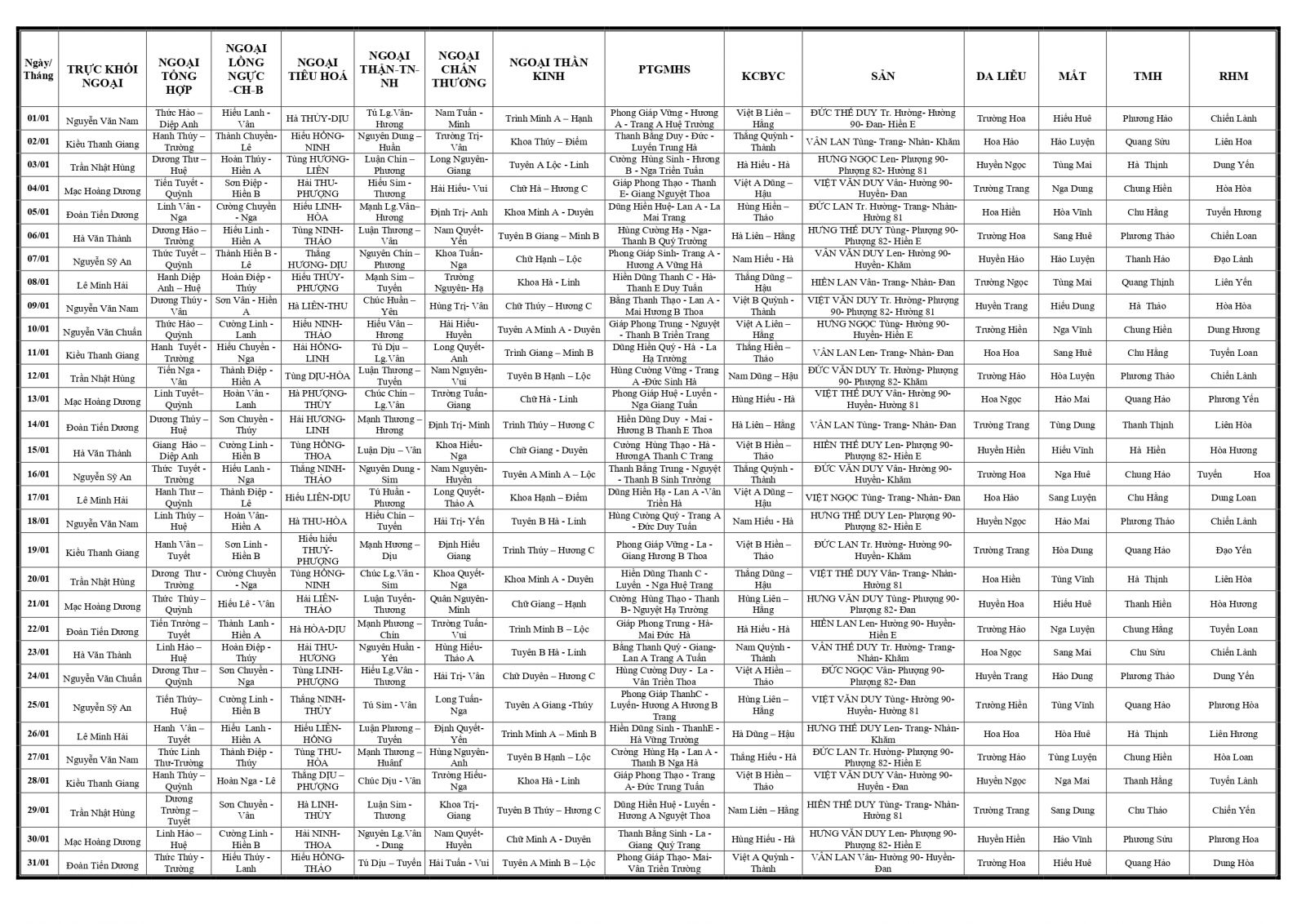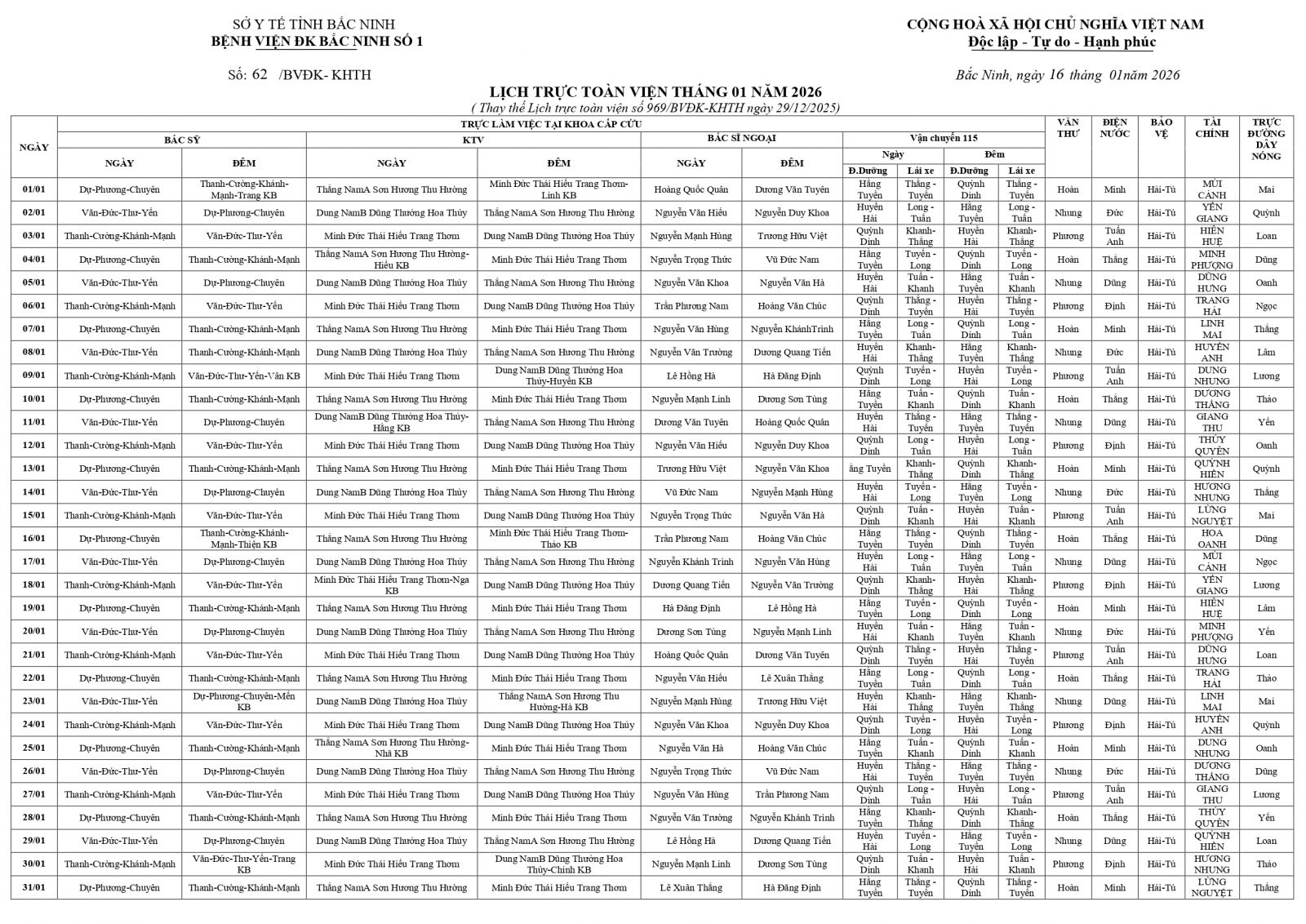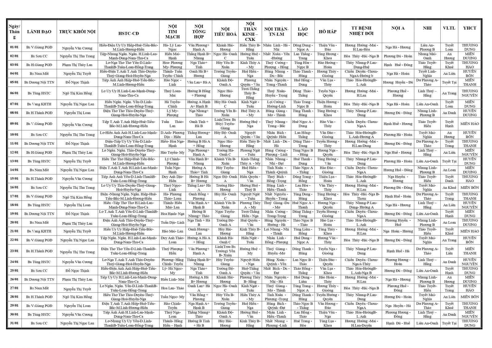 Thứ 6, 16/01/2026 | 14:56 A- A A+ | LỊCH TRỰC TOÀN VIỆN THÁNG 01/2026 (Bản thay thế) Đọc bài Lưu Tổng số điểm của bài viết là: 0 trong 0 đánh giá Click để đánh giá bài viết
