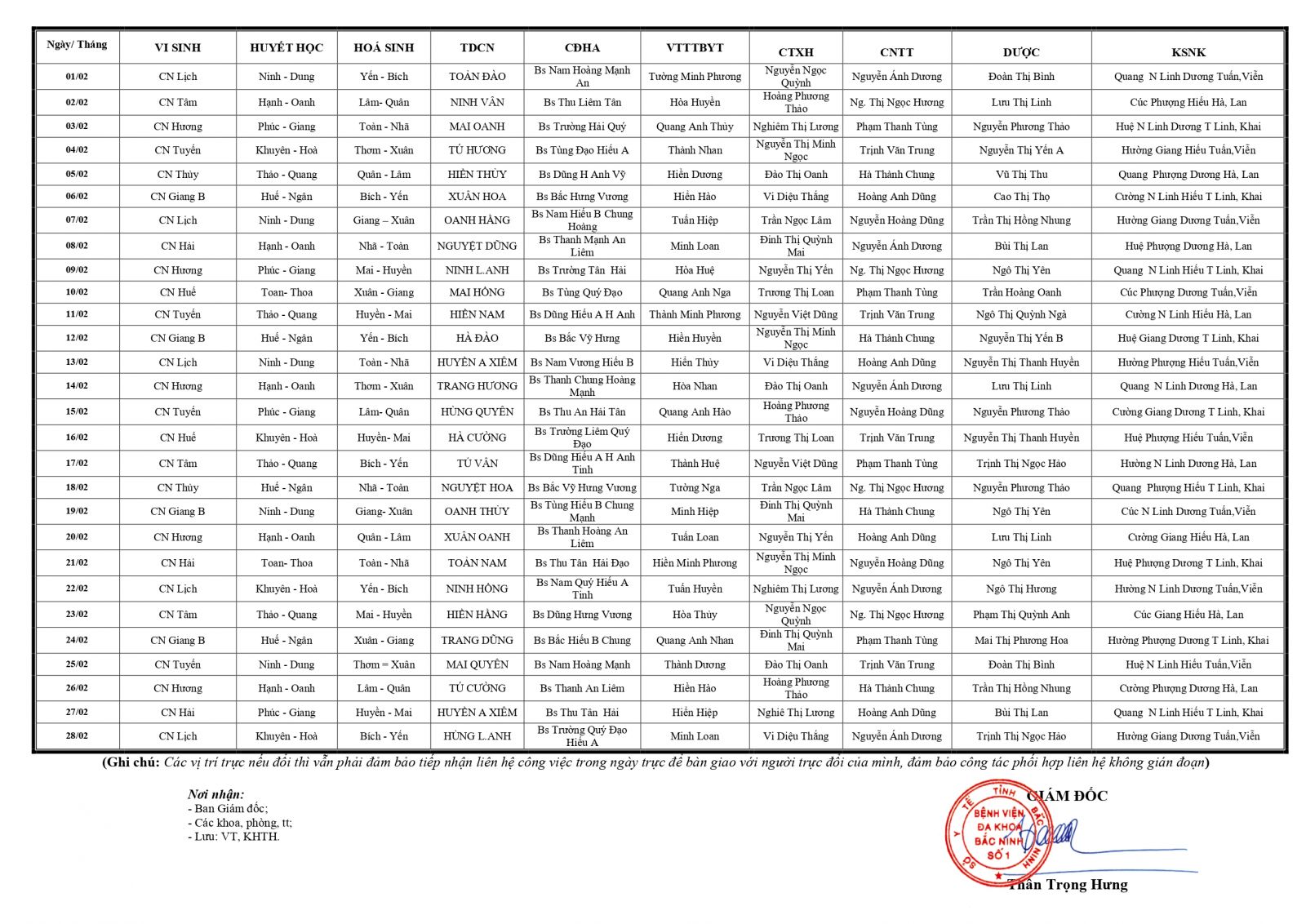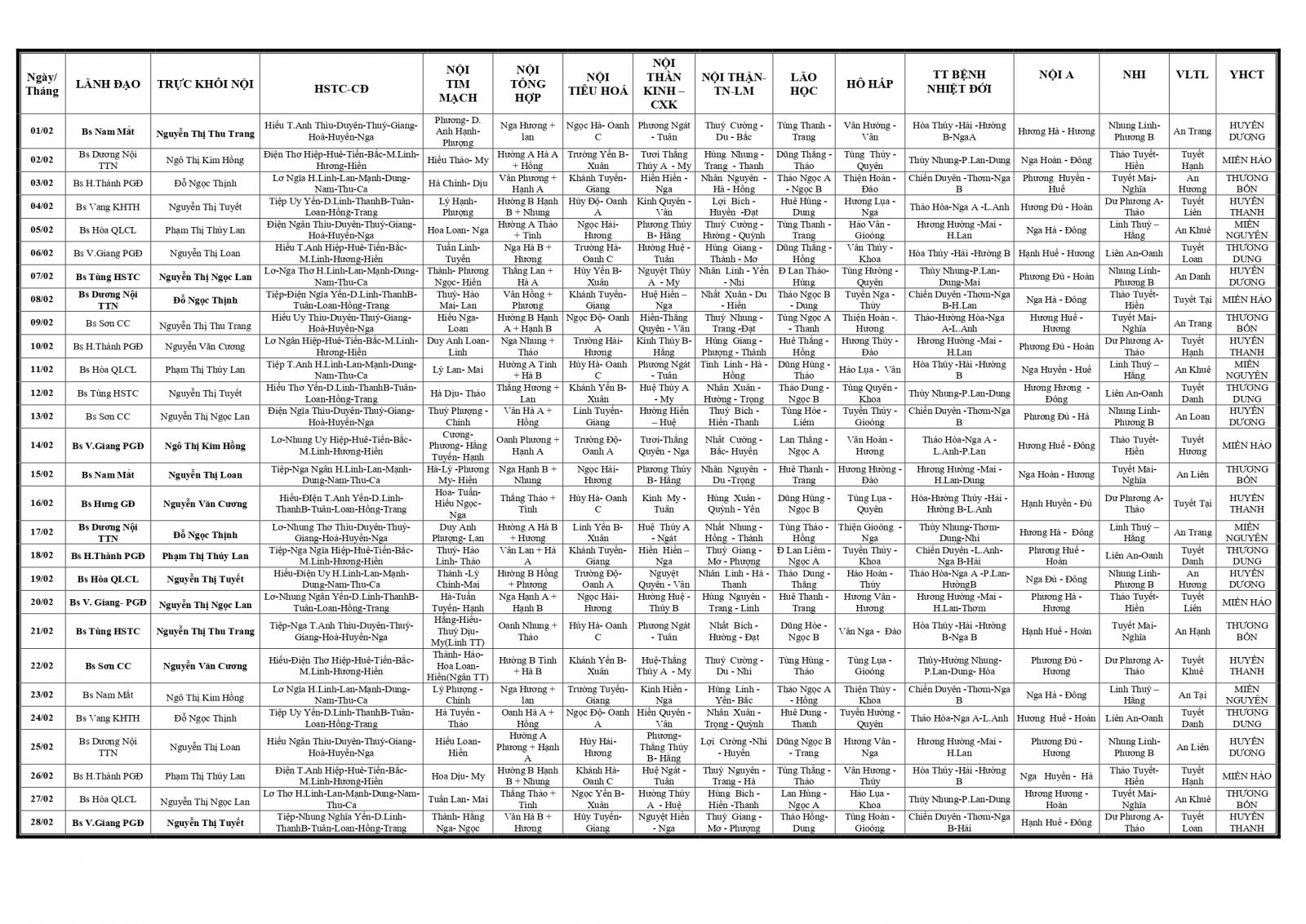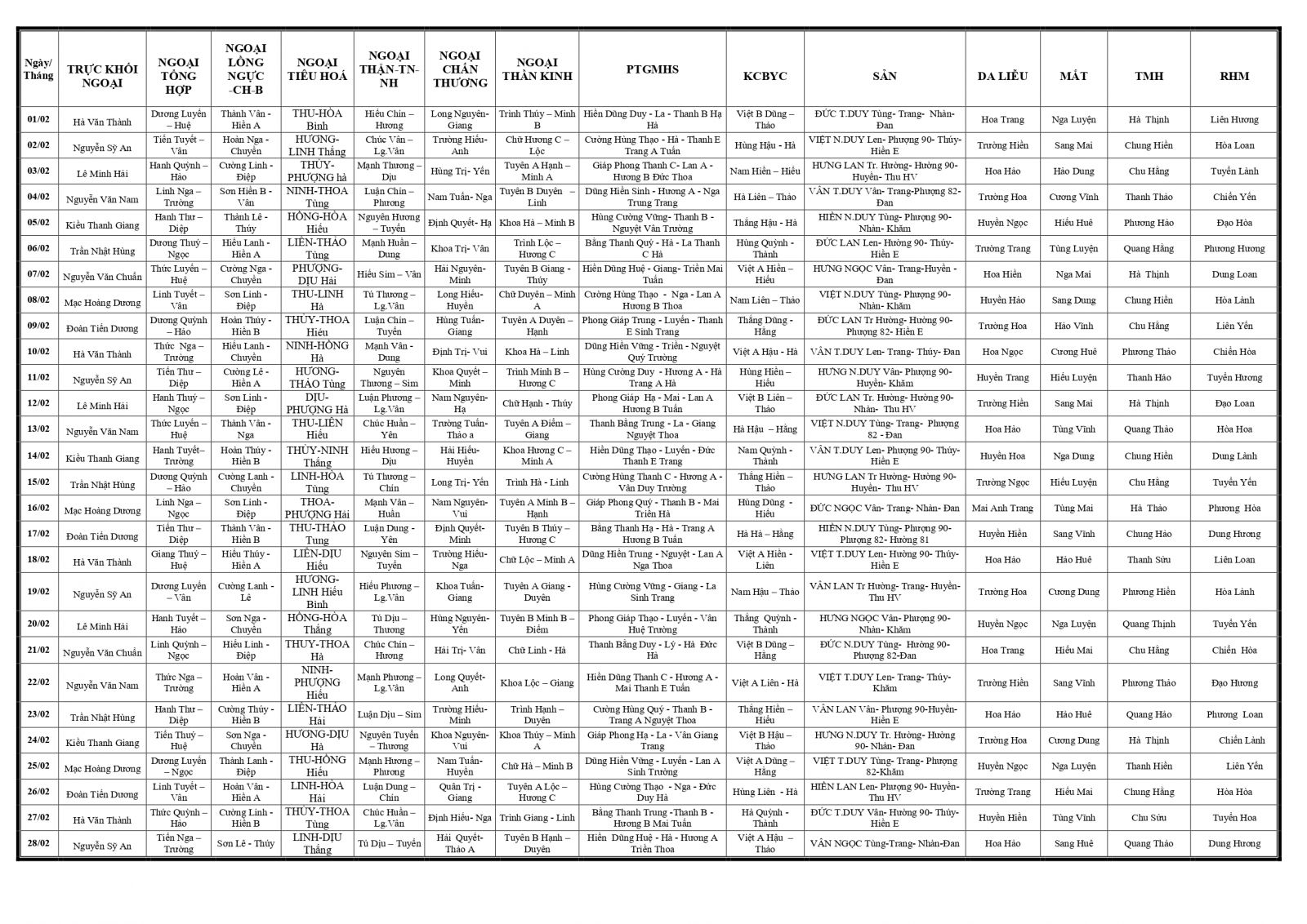 Thứ 2, 26/01/2026 | 14:33 A- A A+ | LỊCH TRỰC TOÀN VIỆN THÁNG 02/2026 Đọc bài Lưu Tổng số điểm của bài viết là: 0 trong 0 đánh giá Click để đánh giá bài viết