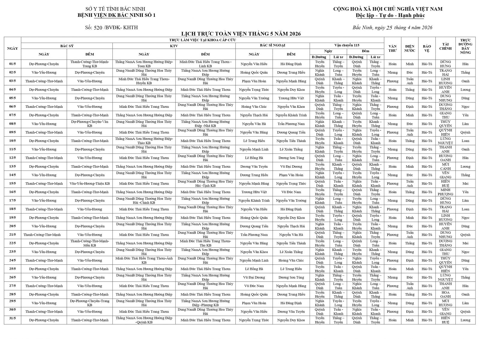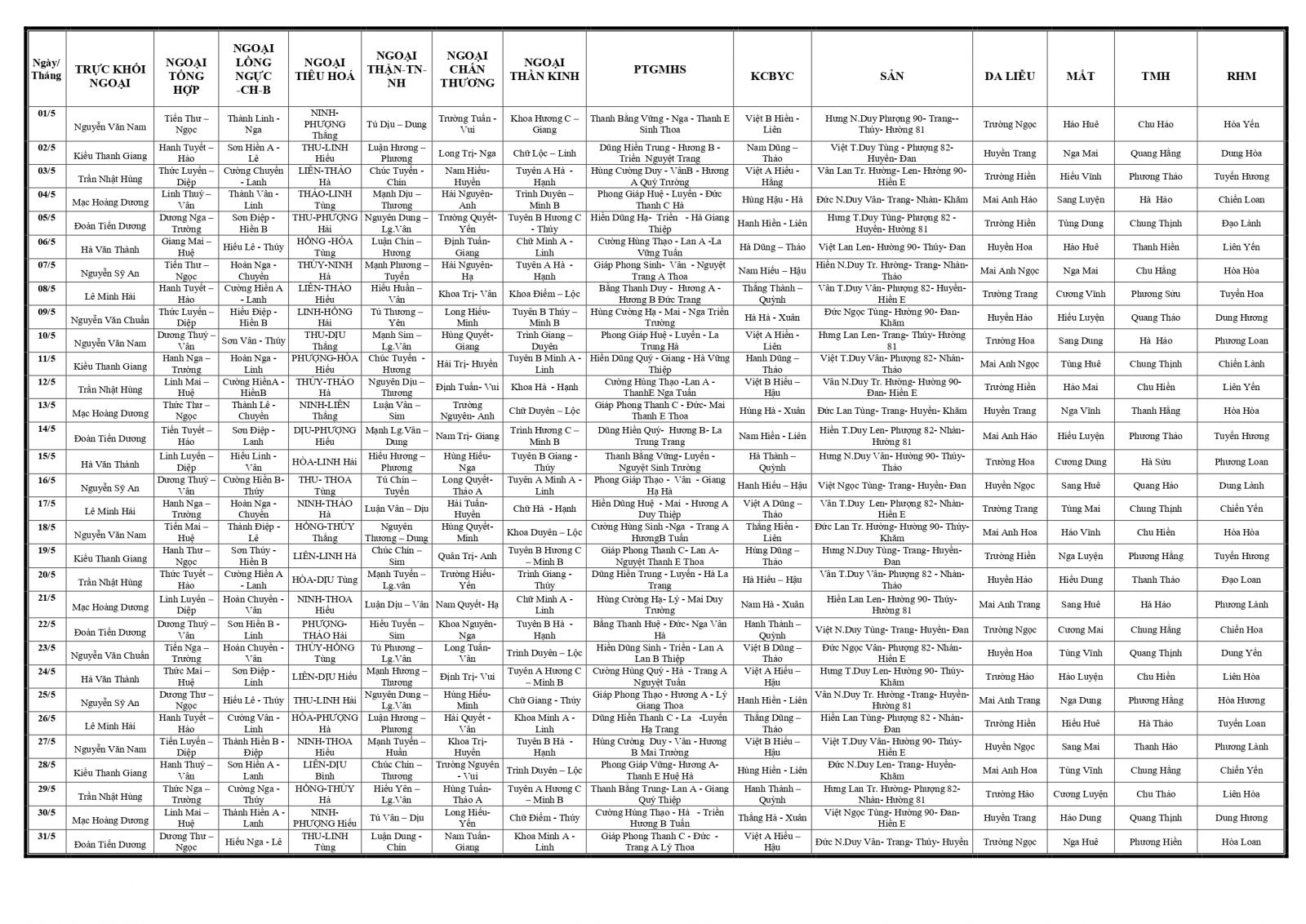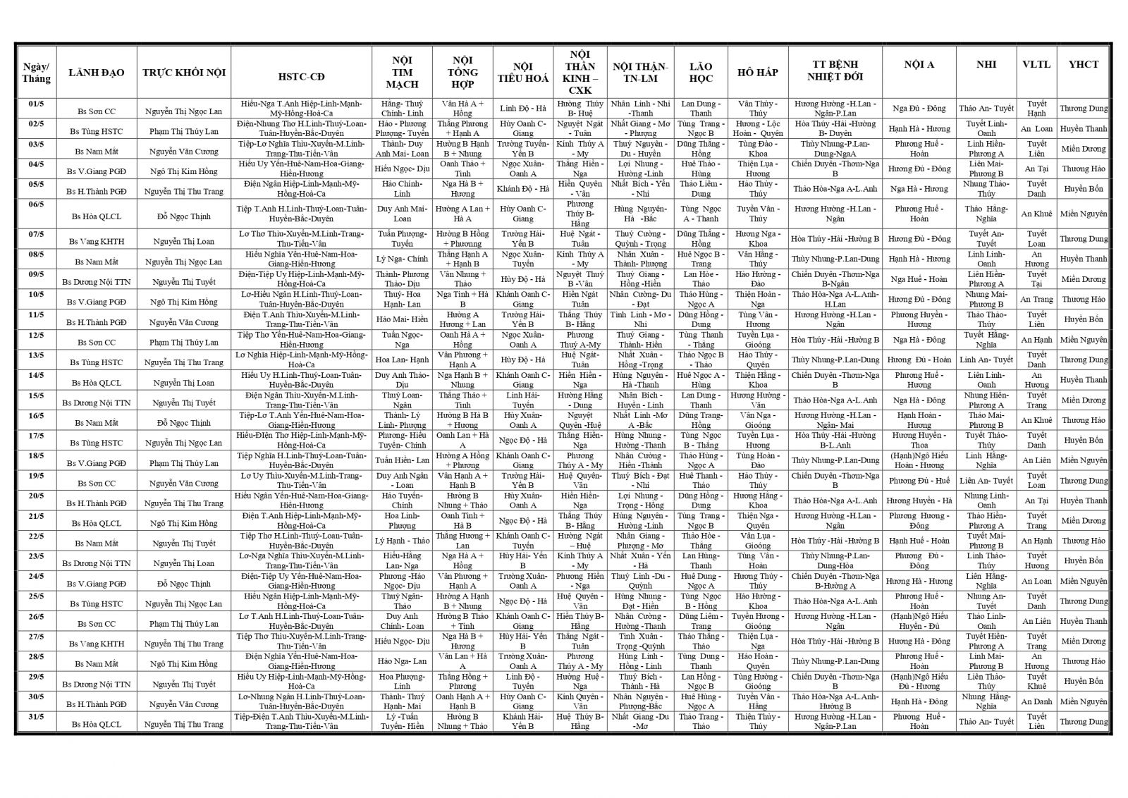 Thứ 3, 28/04/2026 | 14:01 A- A A+ | LỊCH TRỰC TOÀN VIỆN THÁNG 5/2026 Đọc bài Lưu Tổng số điểm của bài viết là: 0 trong 0 đánh giá Click để đánh giá bài viết