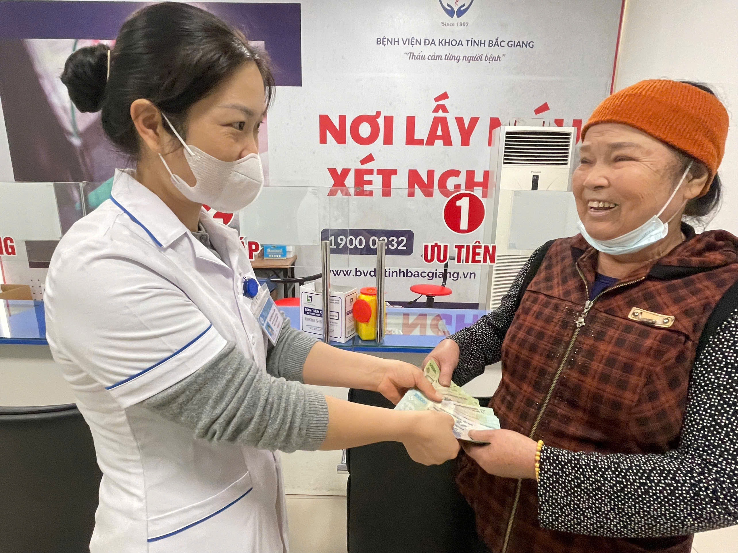 Vào khoảng 9h40, ngày 26/11/2025, trong lúc lấy máu xét nghiệm tại tại khu vực khám các bệnh mạn tính (thuộc tầng 1 toà nhà G, Bệnh viện Đa khoa Bắc Ninh số 1), chị Đồng Thị Ngọc Ánh đã phát hiện có 01 chiếc áo phao (màu xanh than) của người bệnh/ người nhà người bệnh để quên.