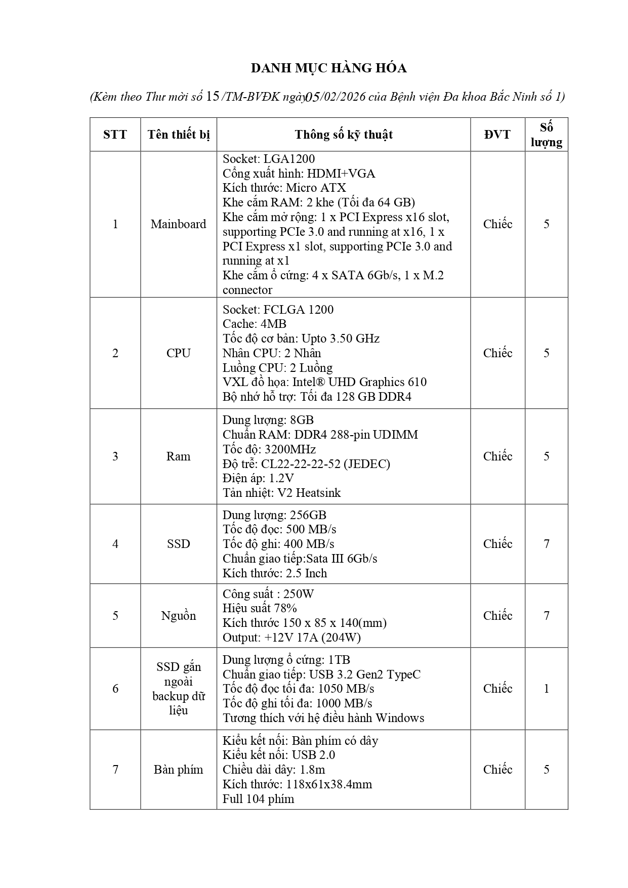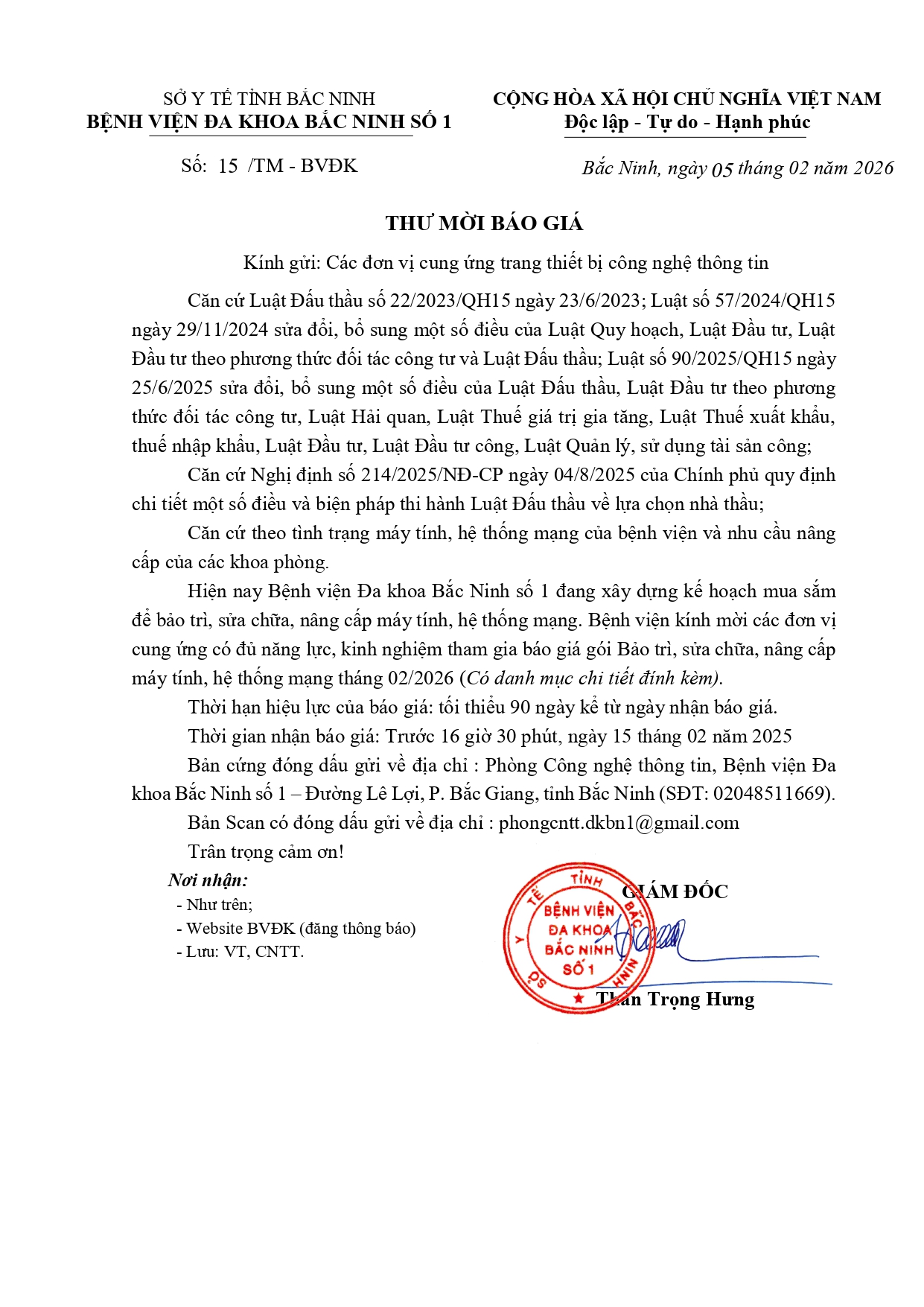 Thứ 6, 06/02/2026 | 14:27 A- A A+ | Thư mời báo giá số 15 Đọc bài Lưu Tổng số điểm của bài viết là: 0 trong 0 đánh giá Click để đánh giá bài viết