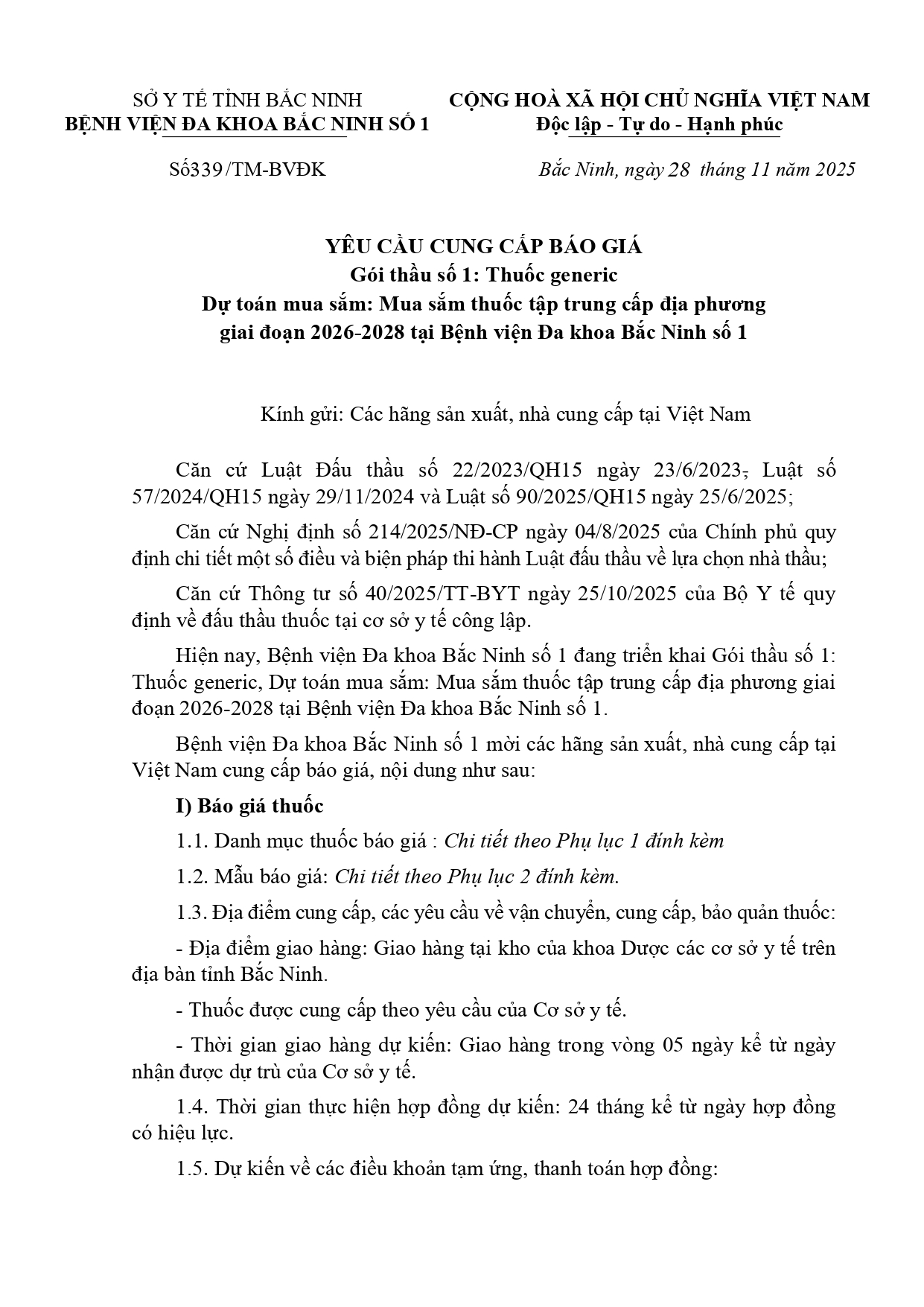 File yêu cầu cung cấp báo giá Gói thầu số 1: Thuốc generic yeu cau báo giá goi thau sô 1 msttcđp__28112025175355_signed.pdf