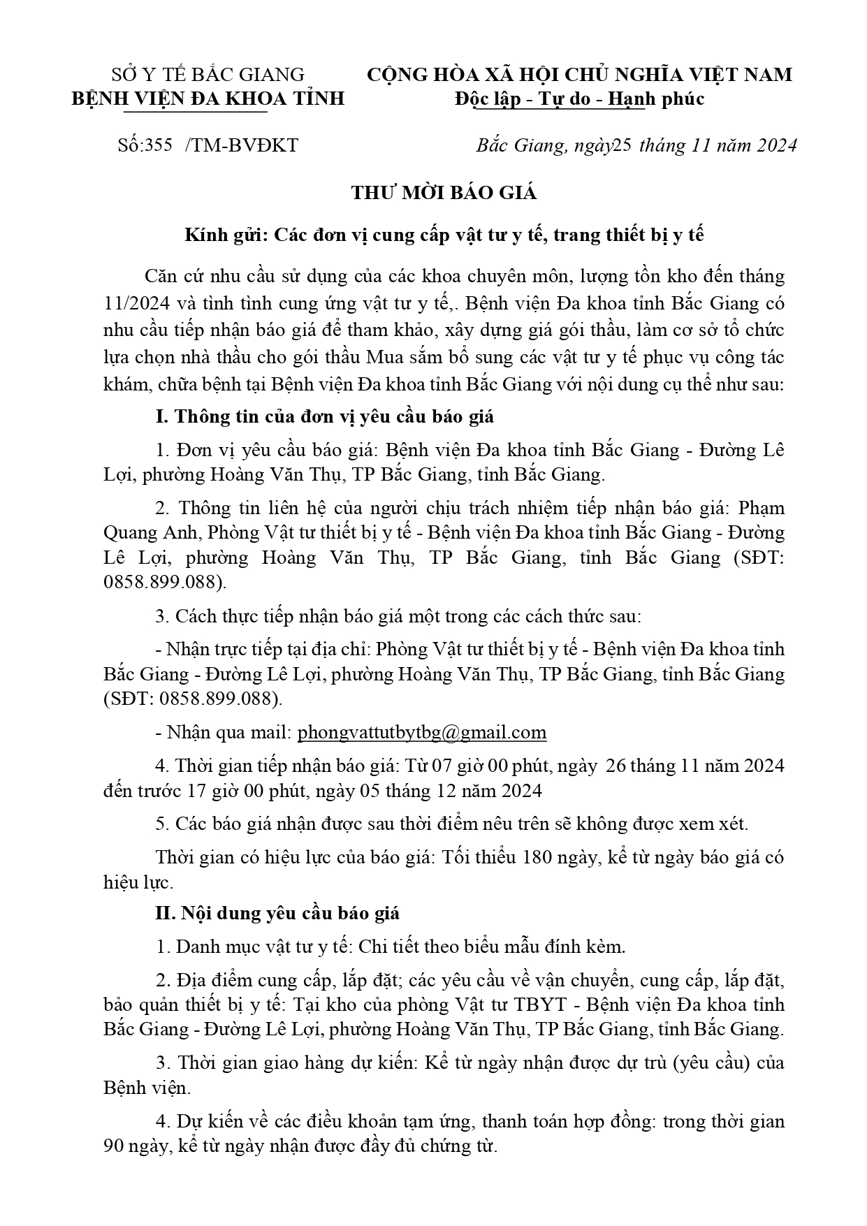 Thứ 3, 26/11/2024 | 10:48 A- A A+ | Thư mời báo giá số 355 Đọc bài Lưu File thư mời + Danh mục báo giá: thư mời báo giá 355.rar-------------------------- Tổng số điểm của bài viết là: 0 trong 0 đánh giá Click để đánh giá bài viết