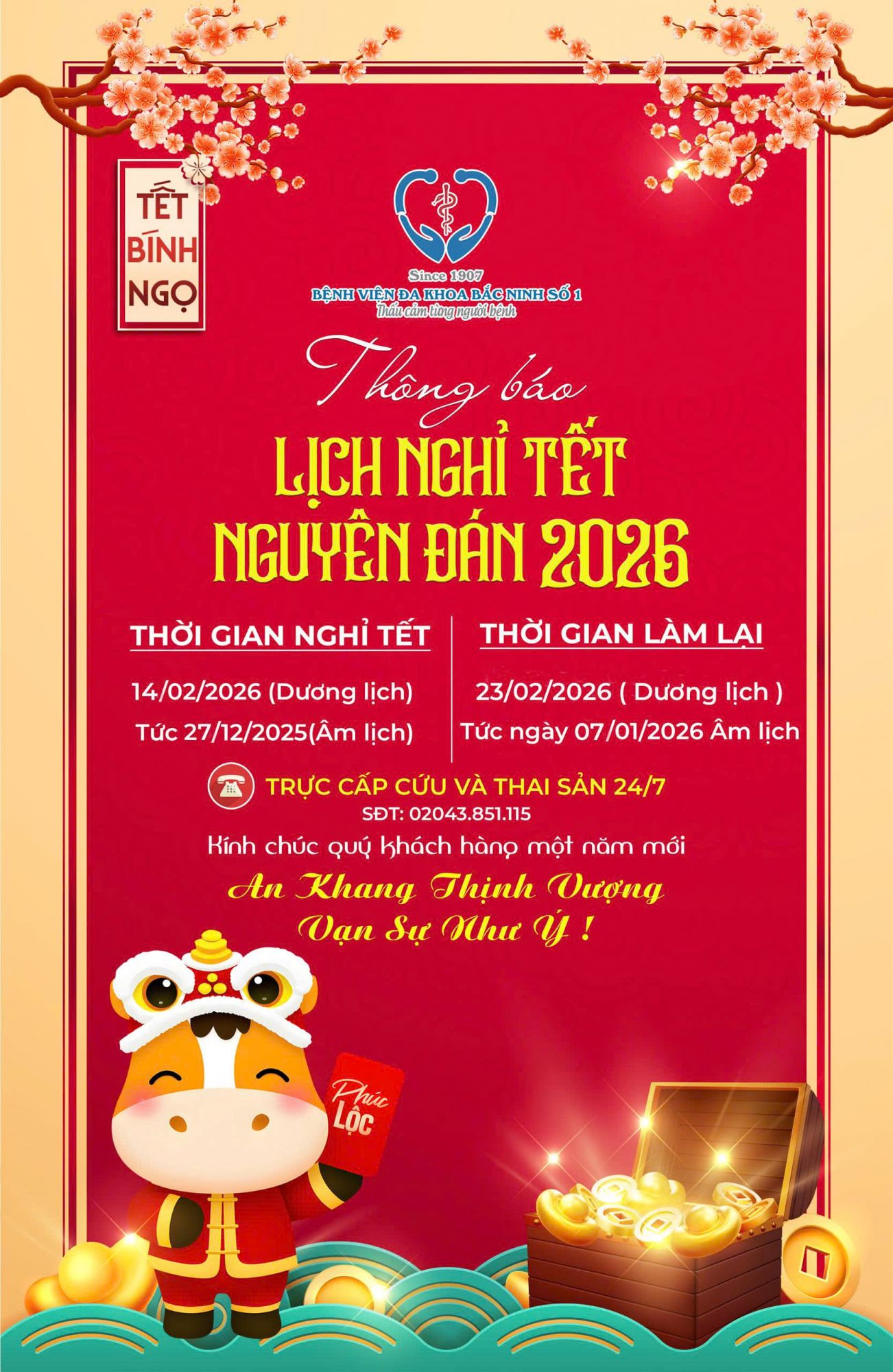 Ảnh: Lịch nghỉ Tết Nguyên Đán Bệnh viện Đa khoa Bắc Ninh số 1