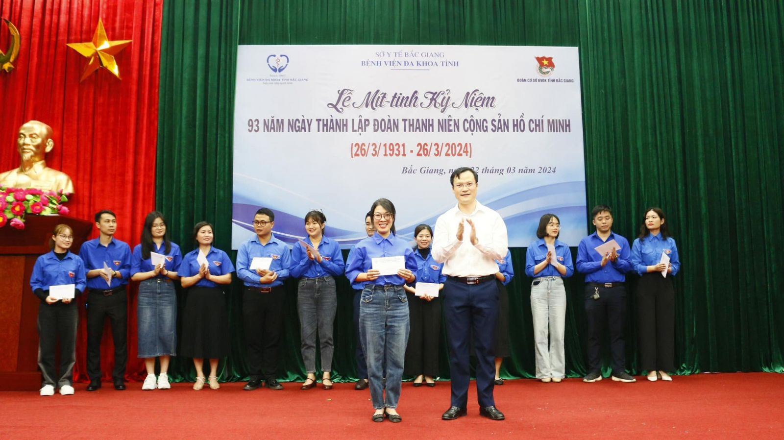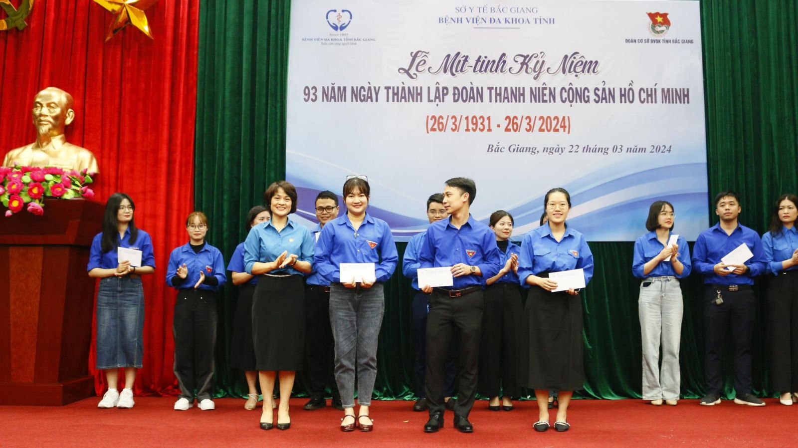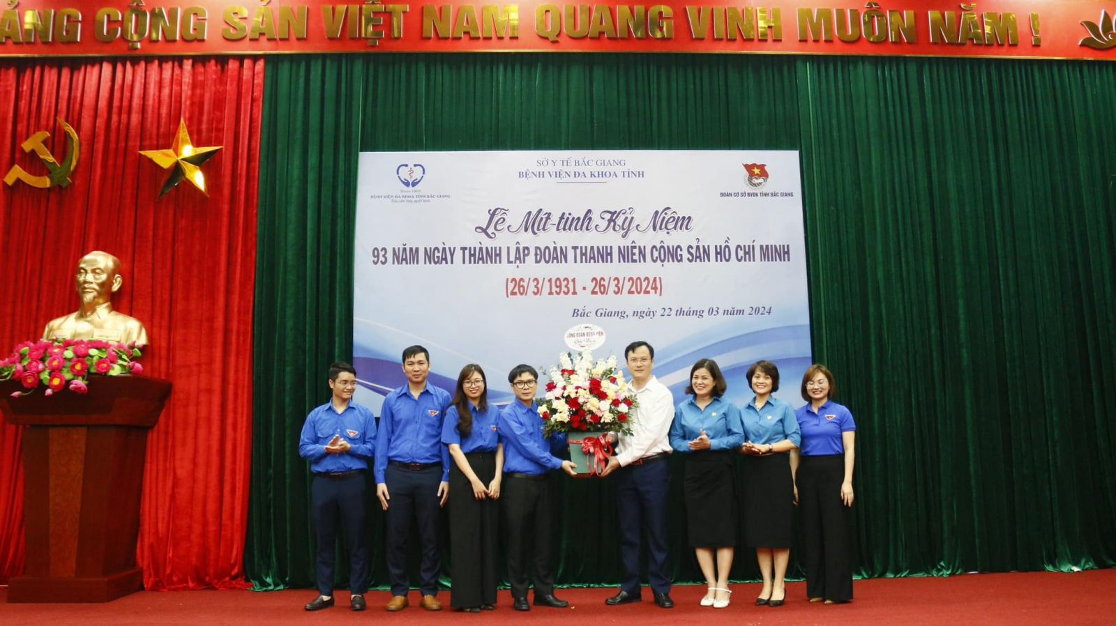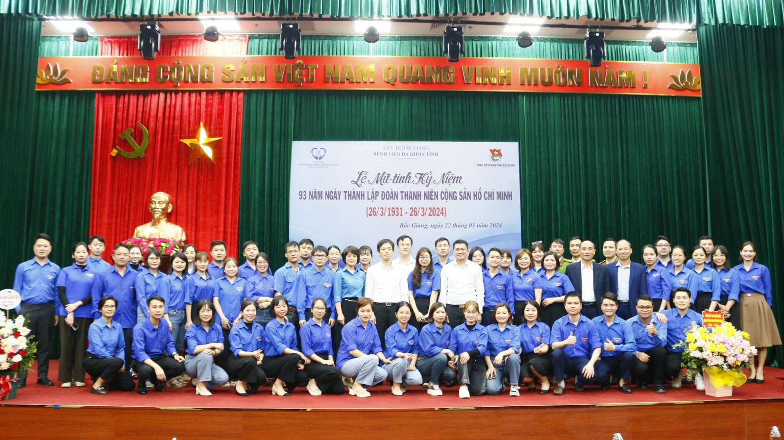 Tại buổi lễ, các đại biểu đã cùng nhau ôn lại chặng đường 93 năm hình thành và phát triển của Đoàn thanh niên cộng sản Hồ Chí Minh. 93 năm qua, trải qua 12 kỳ Đại hội, với 7 tên gọi khác nhau, Đoàn TNCSHCM luôn hoàn thành xuất sắc sứ mệnh được giao, viết lên truyền thống cách mạng của Đoàn. Cùng với tuổi trẻ cả nước, những năm qua, tuổi trẻ Bệnh viện Đa khoa tỉnh Bắc Giang đã không ngừng phát huy truyền thống cách mạng của các thế hệ thanh niên Việt Nam, thực hiện có hiệu quả nhiều phong trào xung kích - tình nguyện. Các phong trào “Xung kích, tình nguyện phát triển kinh tế - xã hội và bảo vệ Tổ quốc”, “Đồng hành với thanh niên lập thân, lập nghiệp” tạo được dấu ấn tốt đẹp trong xã hội, vừa tạo môi trường thực tiễn rộng lớn, phong phú, thiết thực để thanh niên Bệnh viện được phát huy vai trò của " những cánh chim xanh, mang màu áo trắng " cho cộng đồng xã hội.
