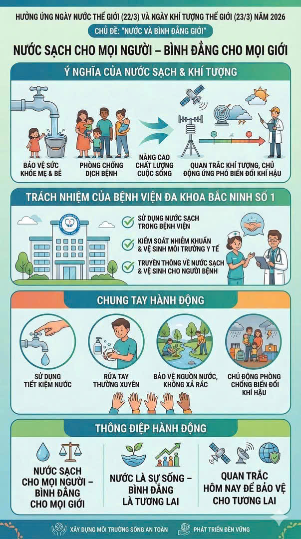 Hưởng ứng Ngày Nước Thế giới và Ngày Khí tượng Thế giới năm 2026 không chỉ là hoạt động mang tính thời điểm mà cần trở thành hành động thường xuyên, góp phần xây dựng môi trường sống an toàn, nâng cao sức khỏe cộng đồng và hướng tới phát triển bền vững.
