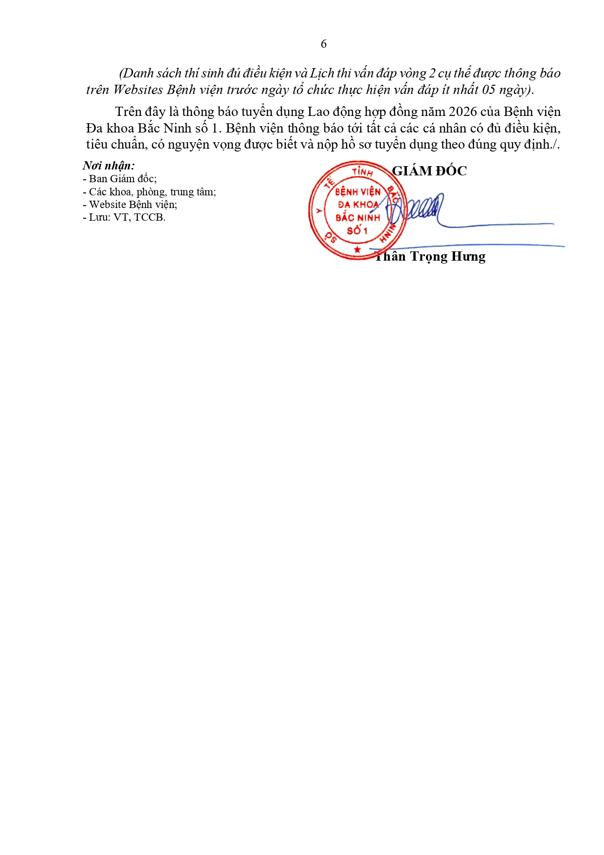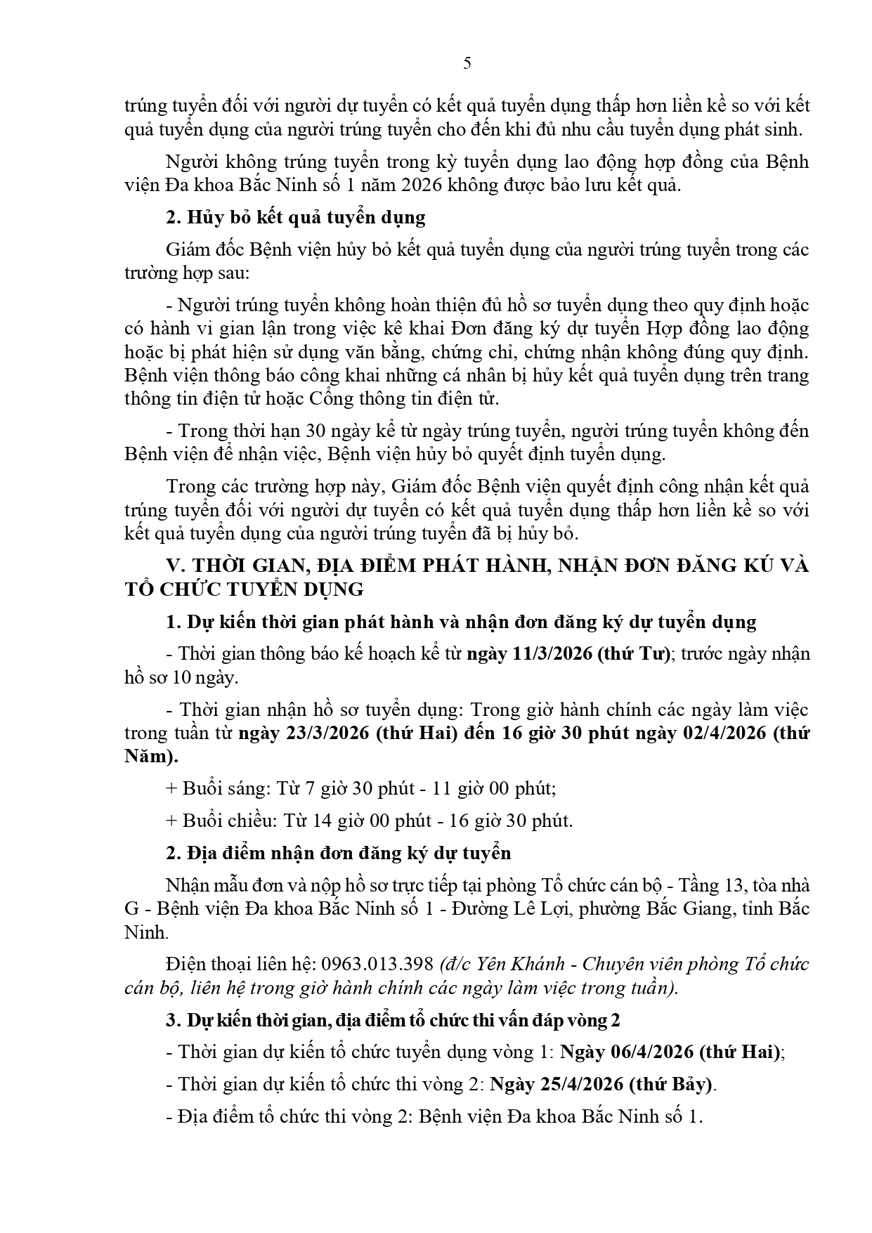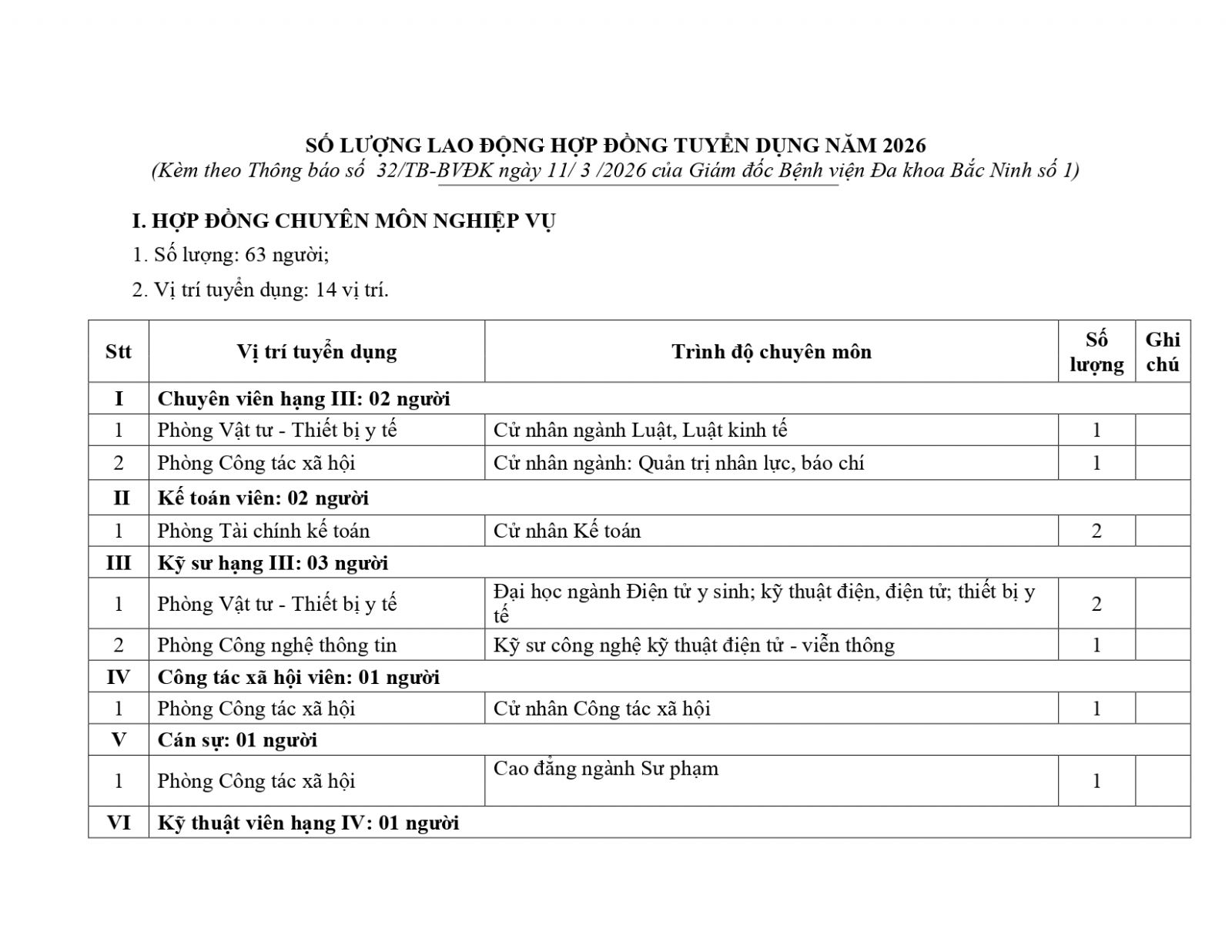 Tuyển dụng Lao động hợp đồng Bệnh viện Đa khoa Bắc Ninh số 1 năm 2026